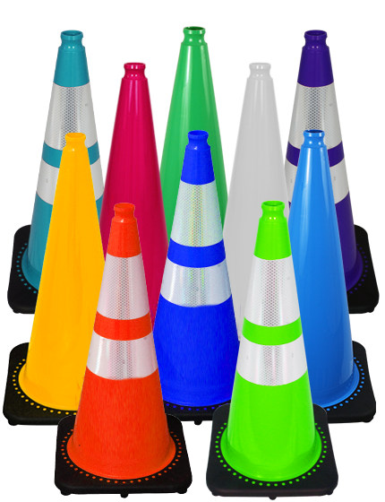 Teal 28" Traffic Cone w/ 6" & 4" Reflective Collars w/ Full Color Graphic