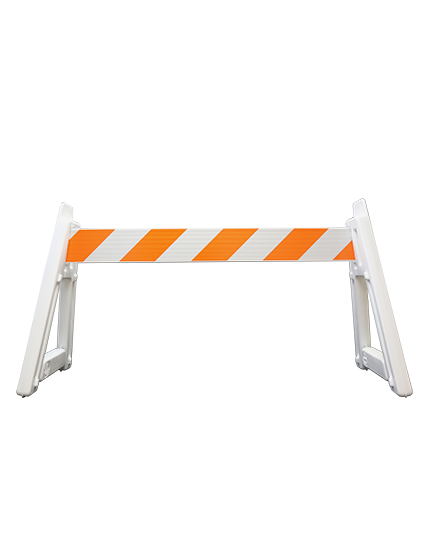 A 6' Durable, plastic rail to stretch between the two legs covered in either Engineer Grade (EG) or High Intensity (HI) Orange/White Reflective Sheeting on one or both sides