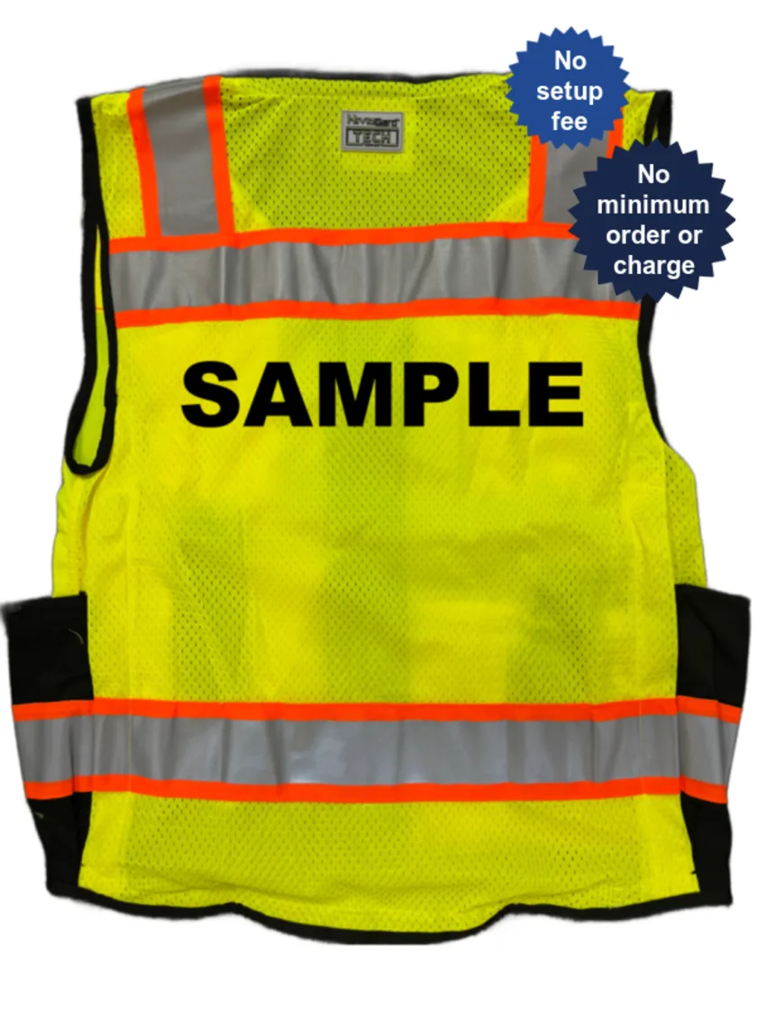 Liberty Hivizgard Tech Series Two Tone, Black Bottom Class 2 Surveyor Vest, Orange, 3Xl w/ Full Color Custom Graphic