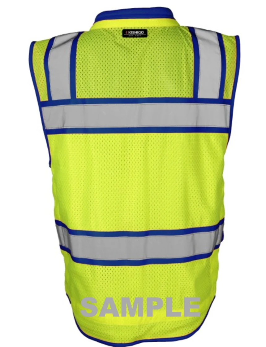 Kishigo Color Contrast High Performance Surveyors Lime & Blue, Class 2 Safety Vest, 2XL with Custom Reflective Text