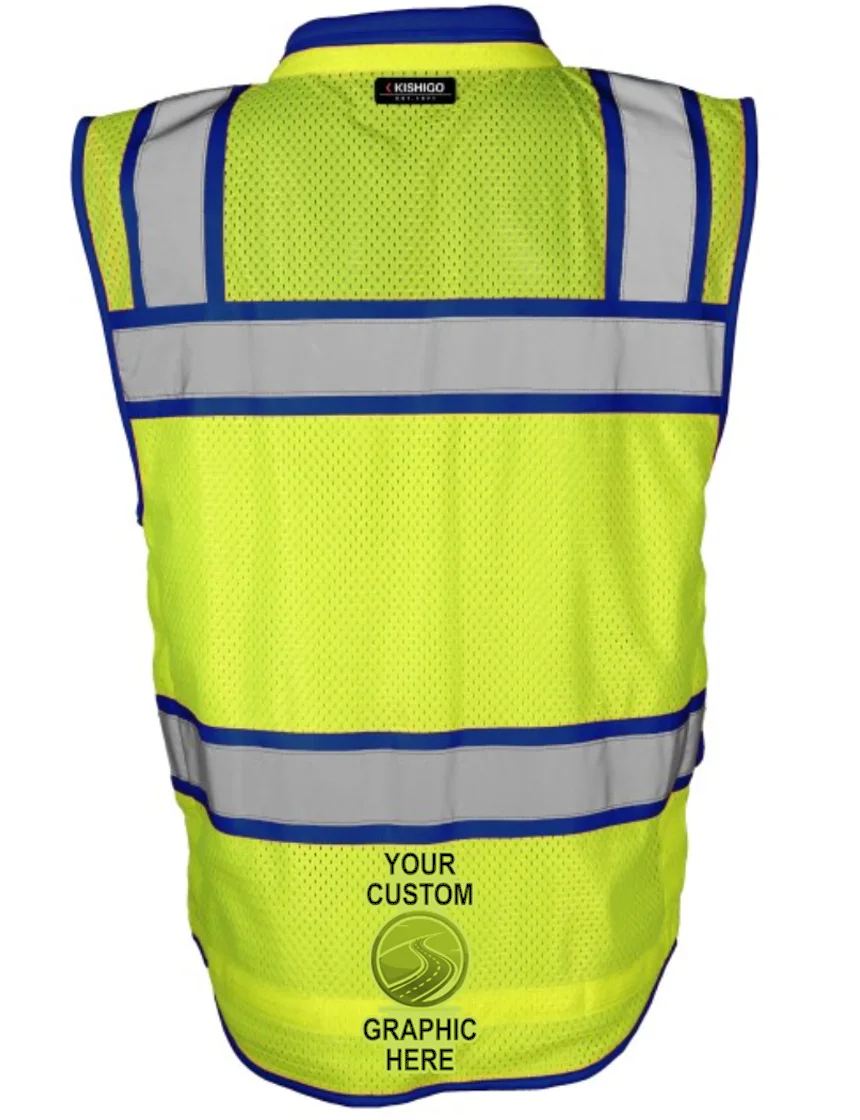 Kishigo Color Contrast High Performance Surveyors Lime & Blue, Class 2 Safety Vest, 2XL with Single Color Graphic