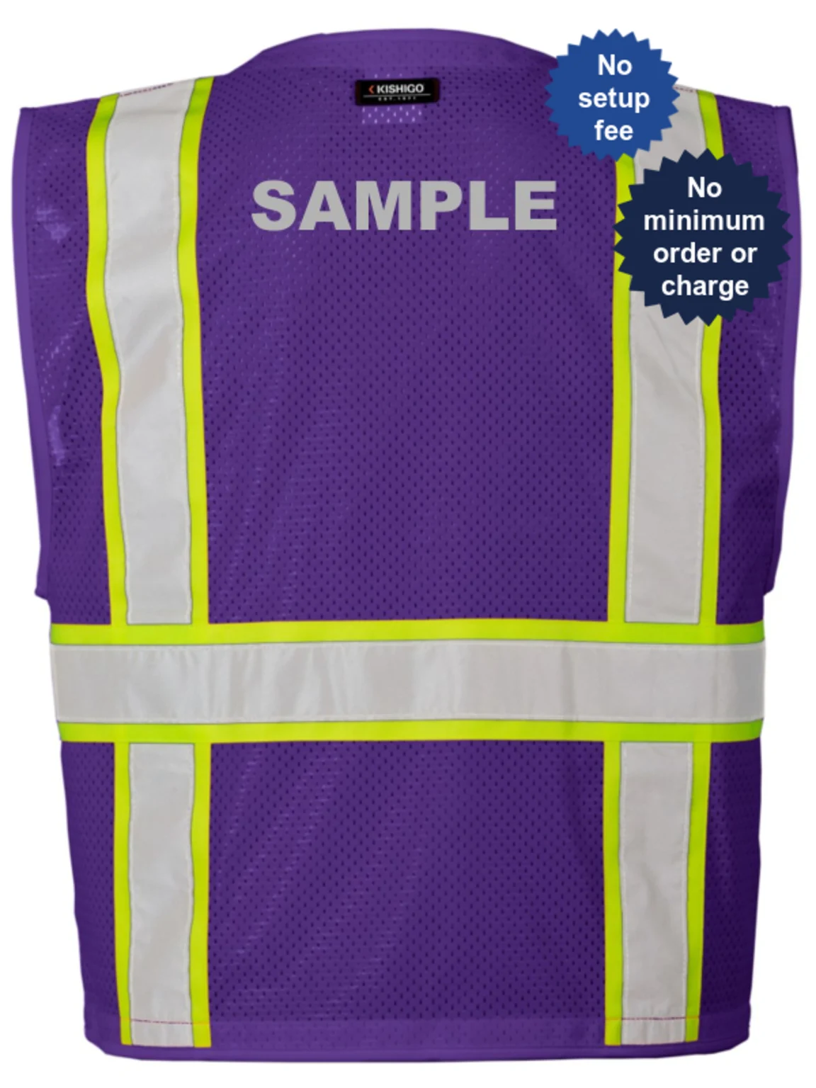 Purple, Enhanced Visibility, Multi Pocket Mesh Vest, S-M w/Custom Reflective Lettering