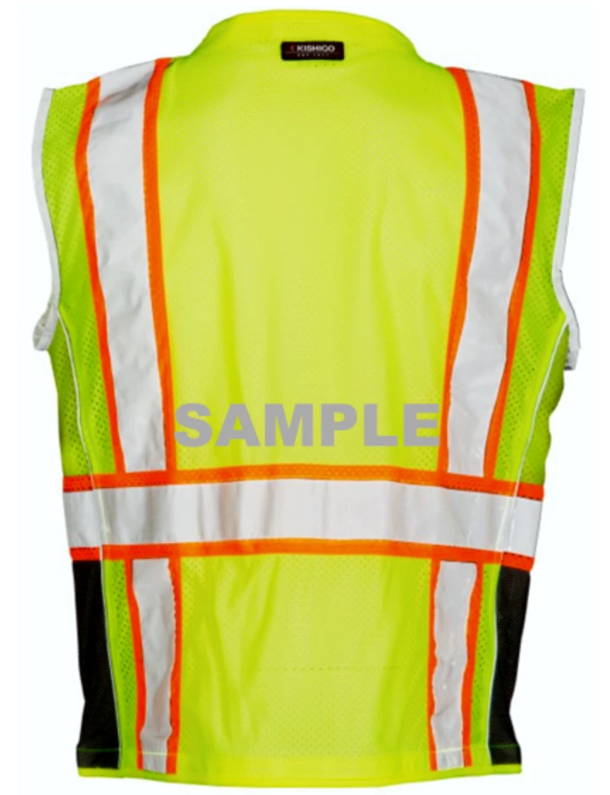 Kishigo Premium Black Series Lime, Class 2 Safety Vest, XL with Custom Reflective Text