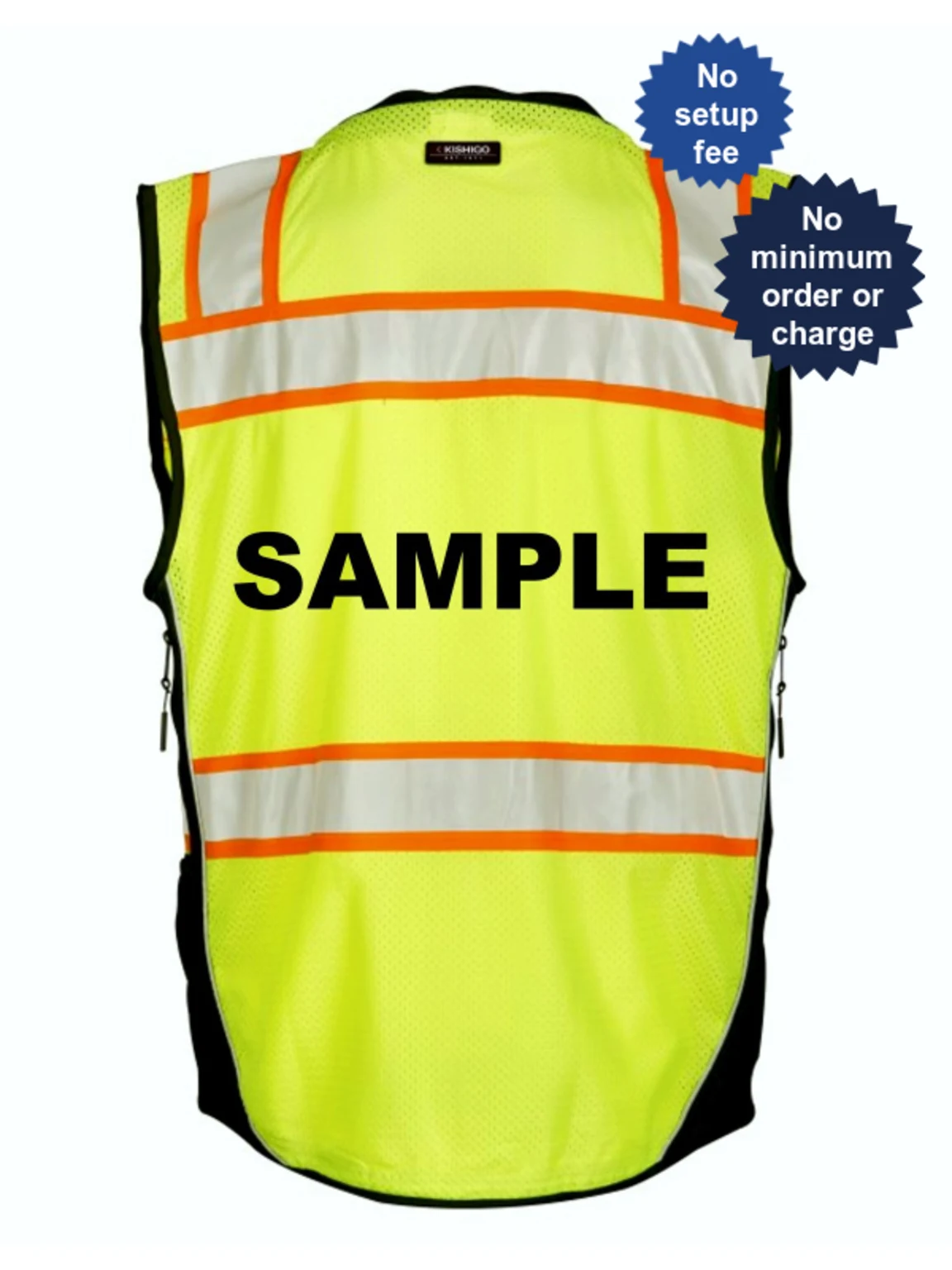 VS5002(3XL) REF Kishigo Lime, Premium Black Series Surveyors Vest, Class 2, 3Xl w/Custom Reflective Text