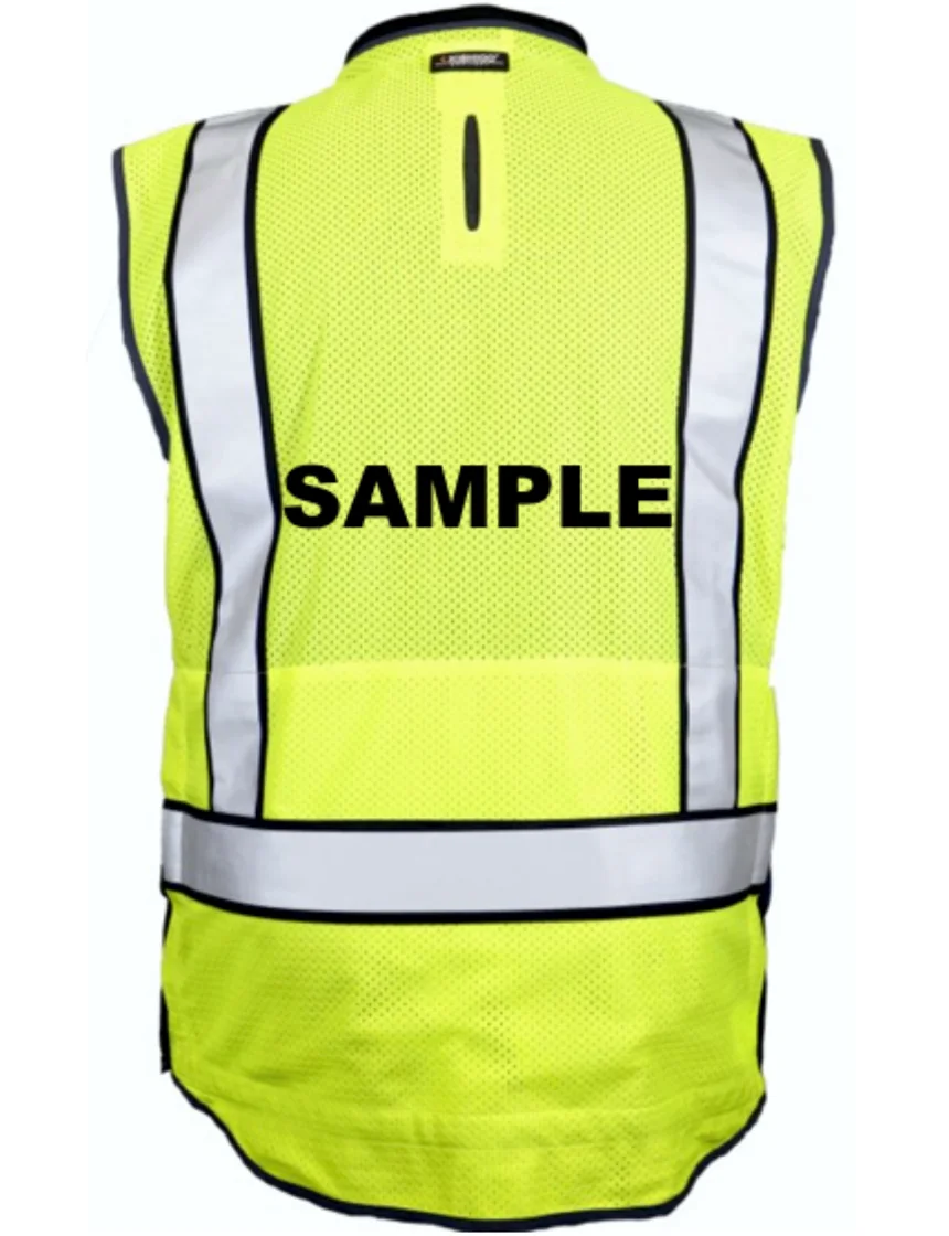 Kishigo Lime and Black, Premium Black Series Tool Tethering Vest, Class 2, with Custom Black Lettering, Large