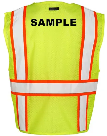 Lime Vest, Class 2, Solid Front w/ Mesh Back, Size: Small w/ Custom Black Lettering